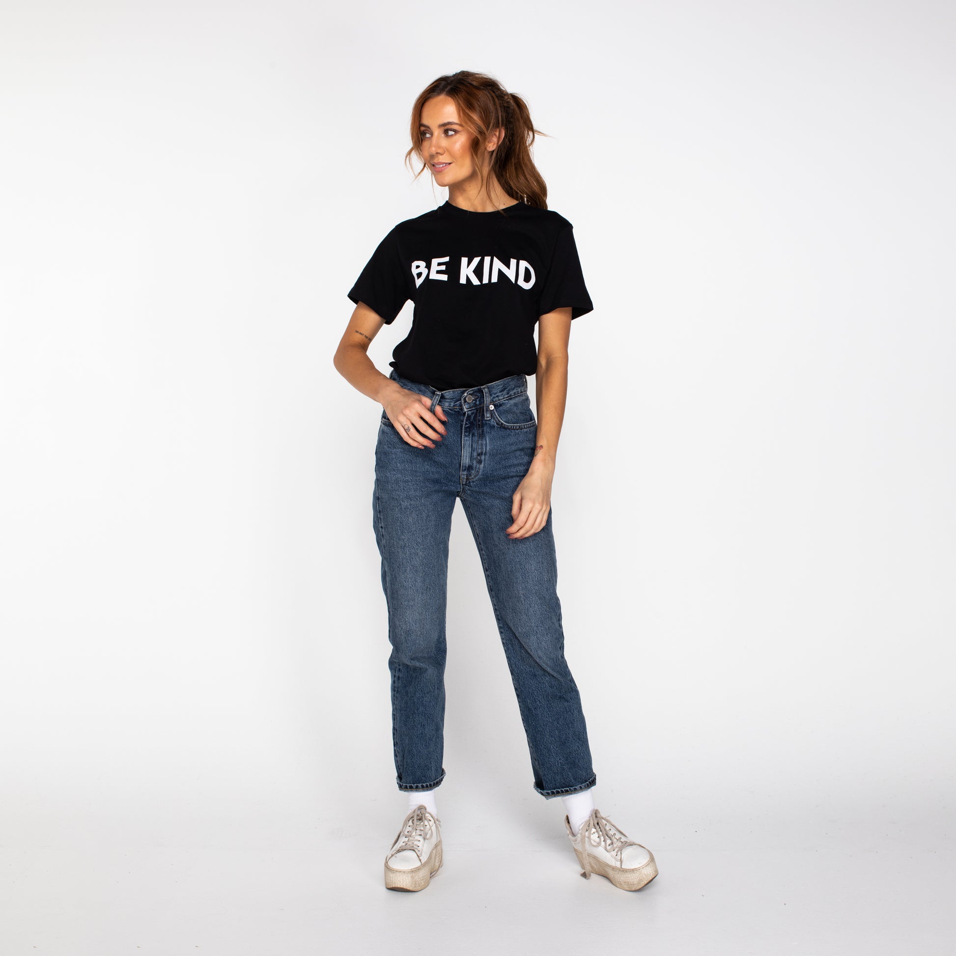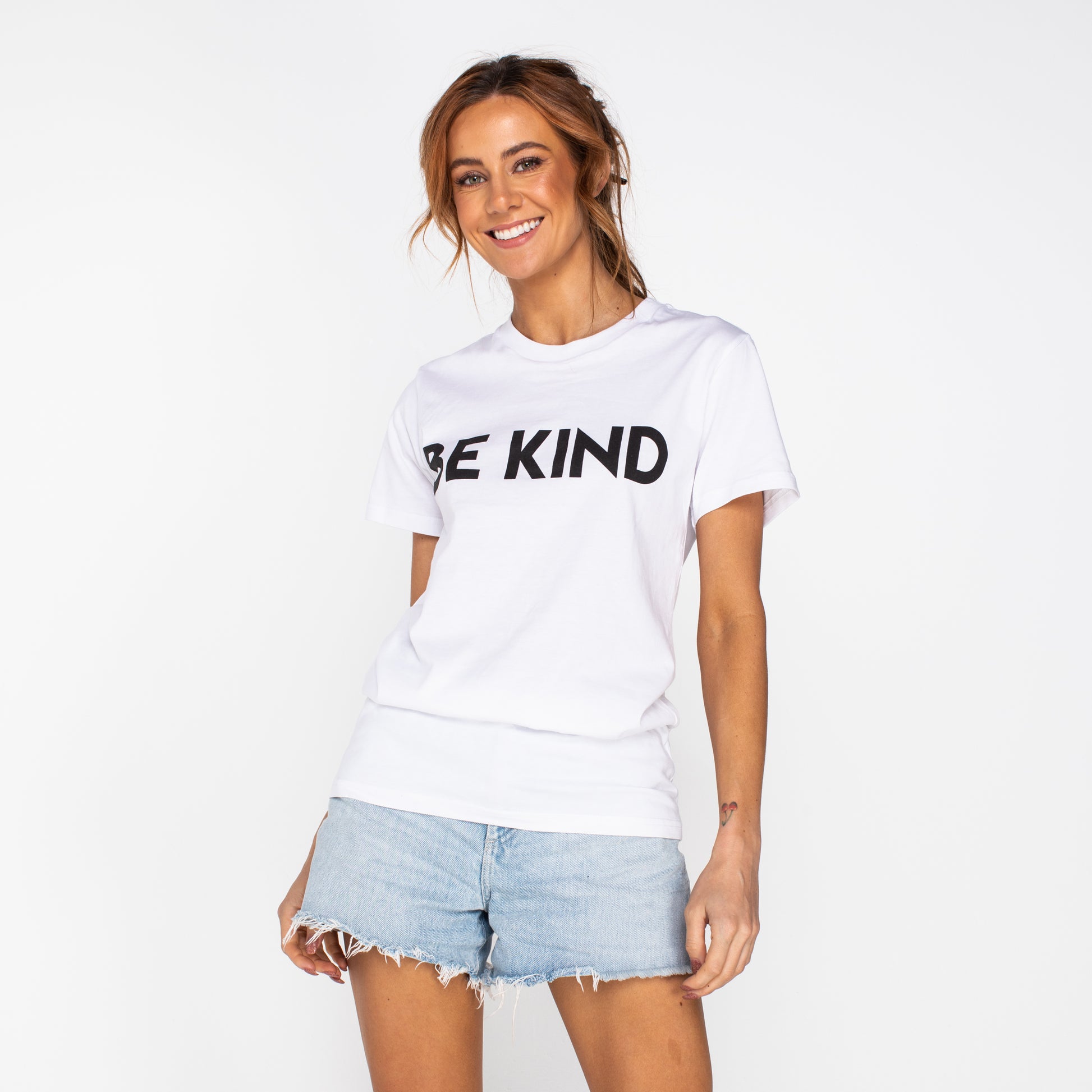 Go bold and be kind with the Janice Tee! This everyday piece is unmissable and will work with virtually any bottoms or outerwear. If you’re passionate about sharing good energy, be loud about it with this top-rated shirt. Make it your own by tying it up, rolling up the sleeves, or wearing it simply as it is.